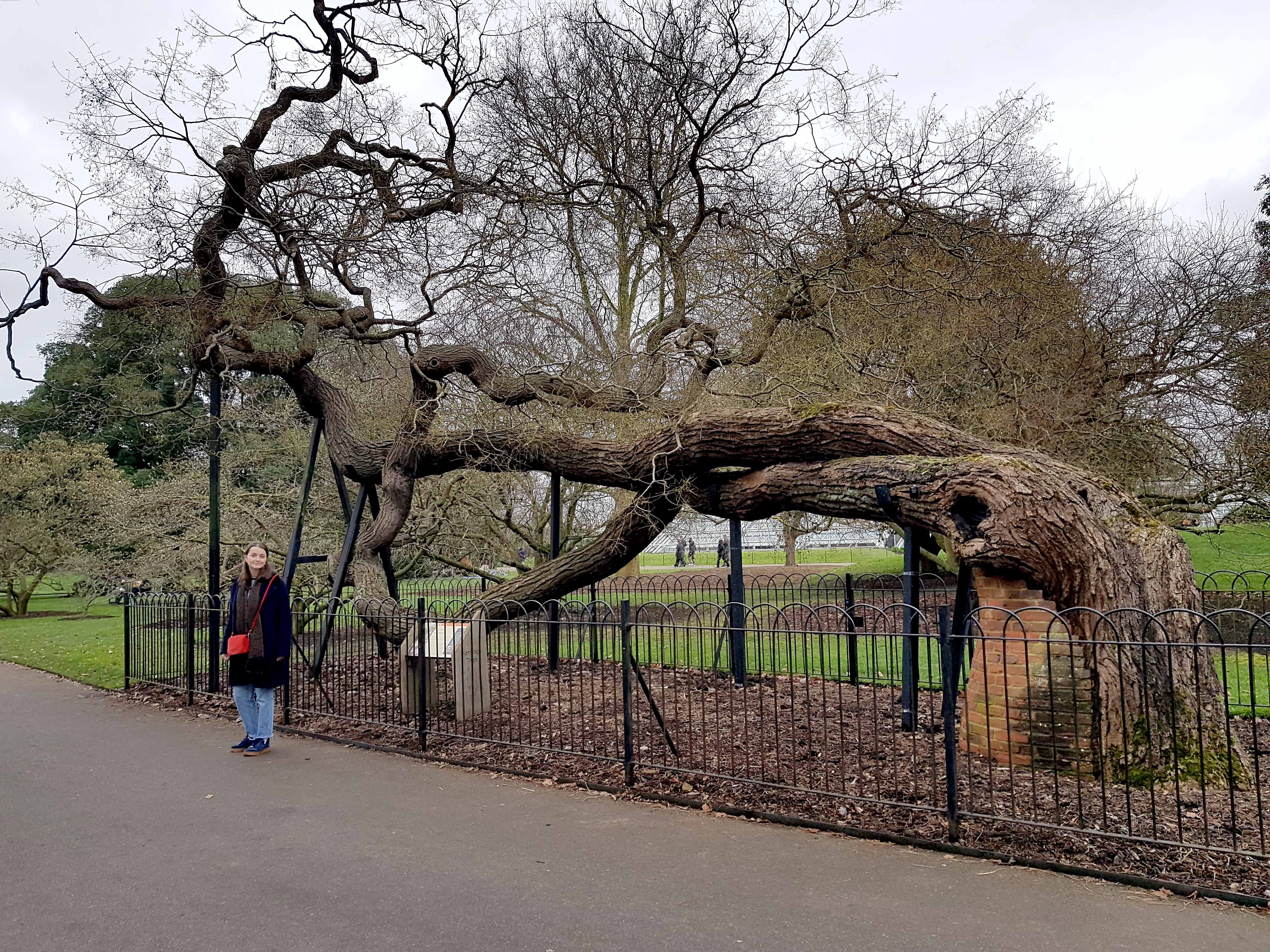 There were a couple of other noteworthy trees we stumbled across in the grounds, including an enormous and fruiting monkey puzzle tree (Araucaria araucana), as well as one of Kew’s ‘Five Old Lions’, a 317 year old Japanese Pagoda tree (Styphnolobium japonicum) (thought to be planted in 1702 when the gardens were a mere five acres) supported by a brick wall!