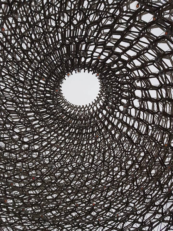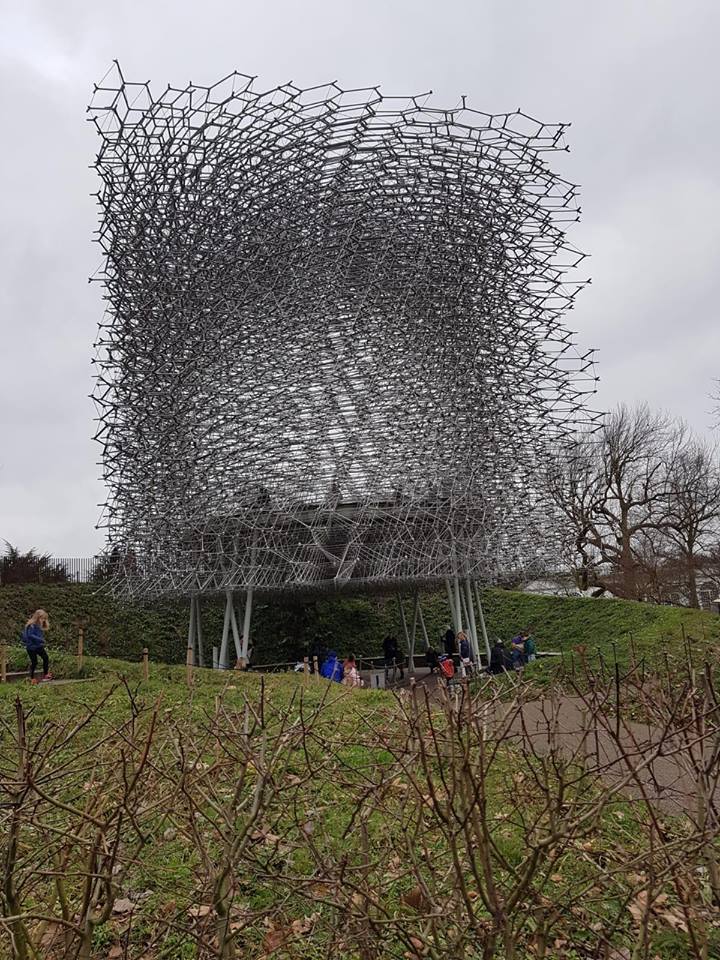 One of the main attractions for us was the multi-award winning Hive. Inspired by scientific research into the health of honeybees, it is made like a giant artificial bee hive into an immersive sound and visual experience situated in an abundant wild flower meadow. (As an aside, it was designed by a rather fantastically named Wolfgang Buttress.) Inside the Hive, you see lights and hear sounds triggered by bee activity in a real beehive elsewhere in the gardens. An incredible structure, it’s 17 metres tall, constructed from 170,000 aluminium parts, 1,000 LED lights and has a fun viewing panel at the bottom.