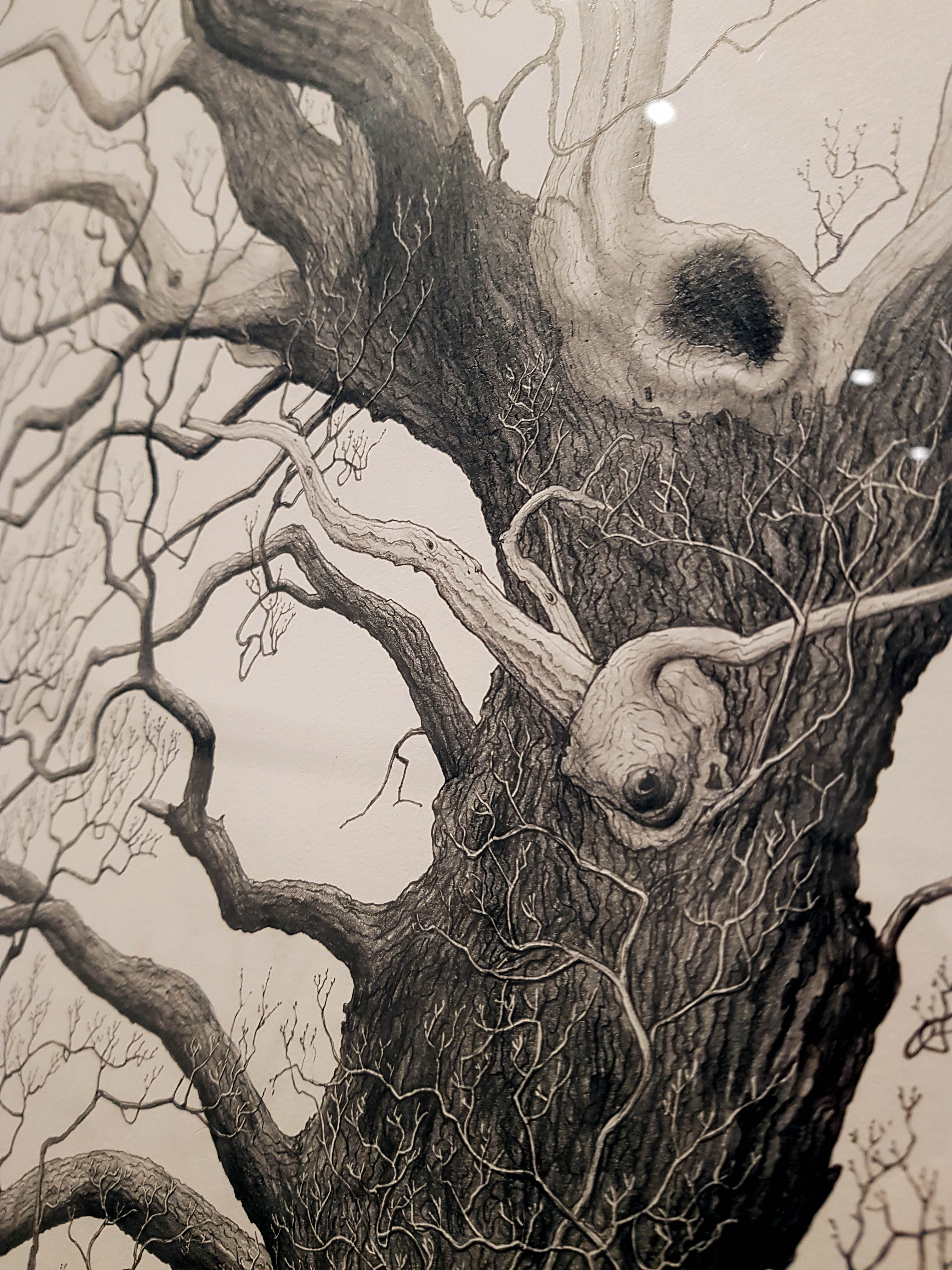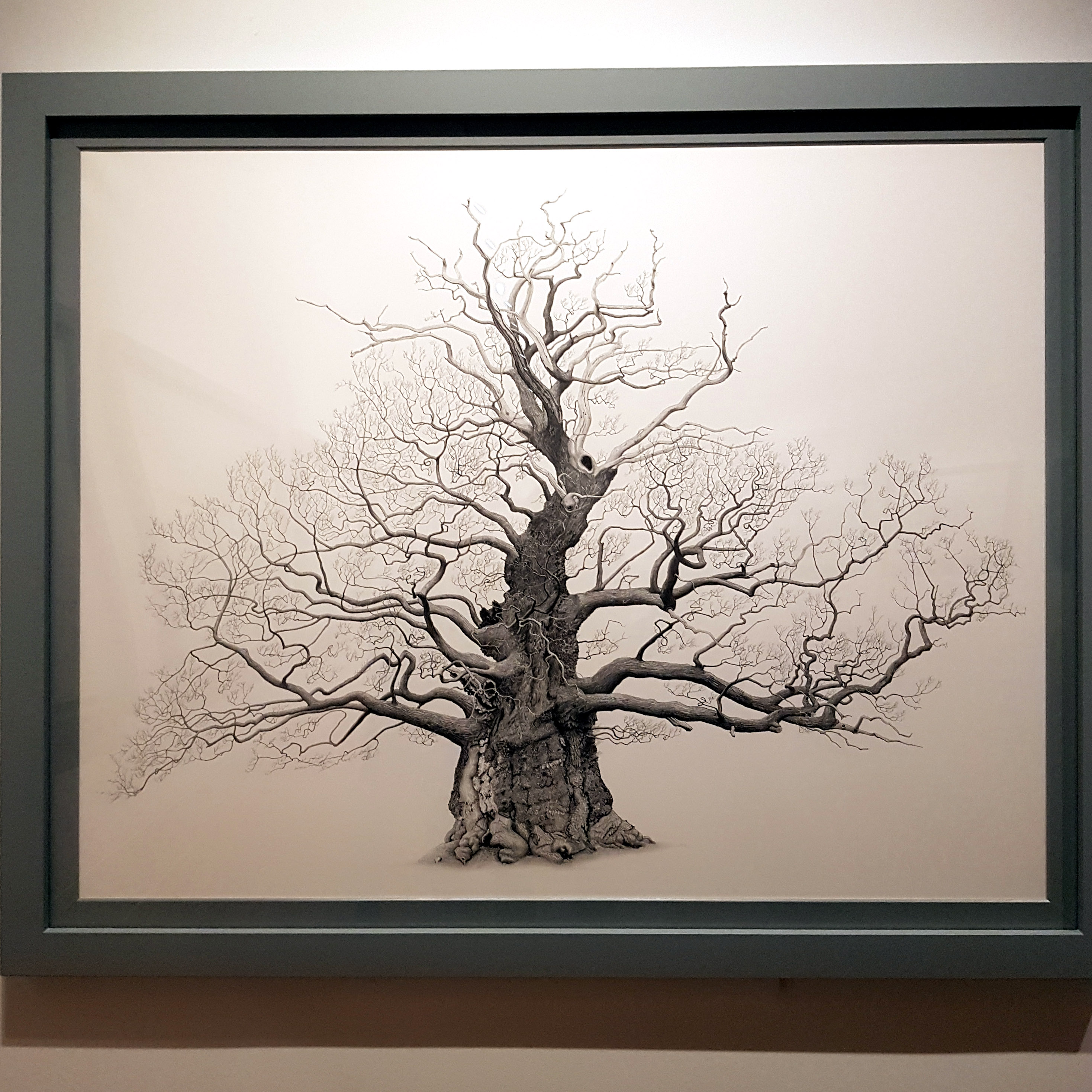 Instead, we made our way over to a more permanent exhibition showcasing some beautiful botanical art. Here, we thoroughly enjoyed A Legacy of Ancient Oaks , a collection of gorgeous line drawings of English oak (Quercus robur) by the artist Mark Frith. Hopefully future blog posts will detail adventures in search of some of these characteristic old trees.